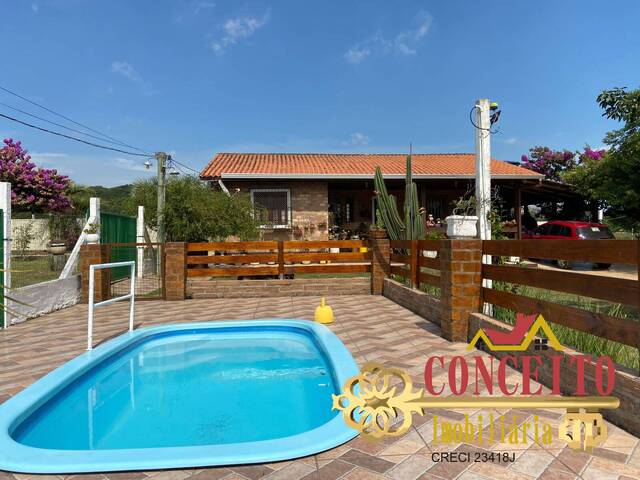 A propriedade ainda conta com piscina e um ambiente arborizado, proporcionando um espaço agradável para lazer e momentos em família.