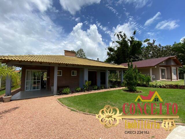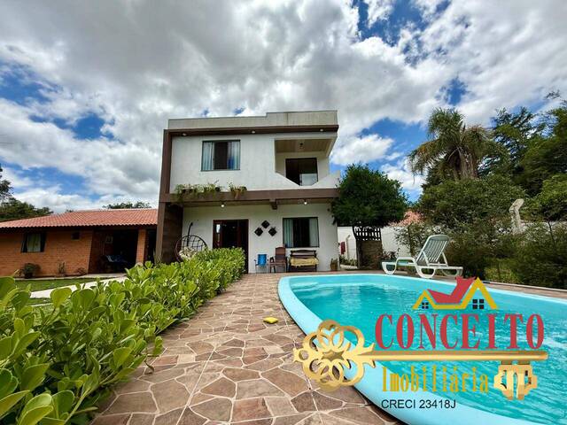 Casa em condomínio Cód. 1273Imobiliária Conceito vende lindo sítio em Condomínio Fechado – Águas Claras, Viamão Área total: 4.700m² Área construída: aproximadamente 150m² Descrição: Encantador sítio em condomínio fechado com portaria 24h, ideal para quem busca tranquilidade, segurança e contato com a natureza. O condomínio conta com duas lagoas perfeitas para pesca ou para apreciar um bom chimarrão ao entardecer, academia ao ar livre e pracinha infantil. O imóvel, em estilo colonial com tijolo à vista, oferece: • 03 dormitórios (sendo 01 suíte) • 02 banheiros sociais • Sala com lareira • Cozinha com fogão campeiro • Lavanderia • Garagem com churrasqueira • Quiosque aberto com churrasqueira e banheiro social • Piscina 4x8m Além disso, o terreno conta com frutíferas, árvores nativas, horta, roça para cultivo, galinheiro desativado e um lindo jardim. Tudo cercado, escriturado e com internet de fibra passando em frente.